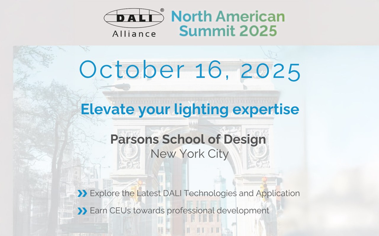 DALI Alliance -the global industry organization for DALI, the internationally-standardized protocol for digital communication between lighting control devices, is elated to invite you to join them at the second North American DALI Summit - set to take place on October 16, 2025, at Parsons School of Design in New York City.