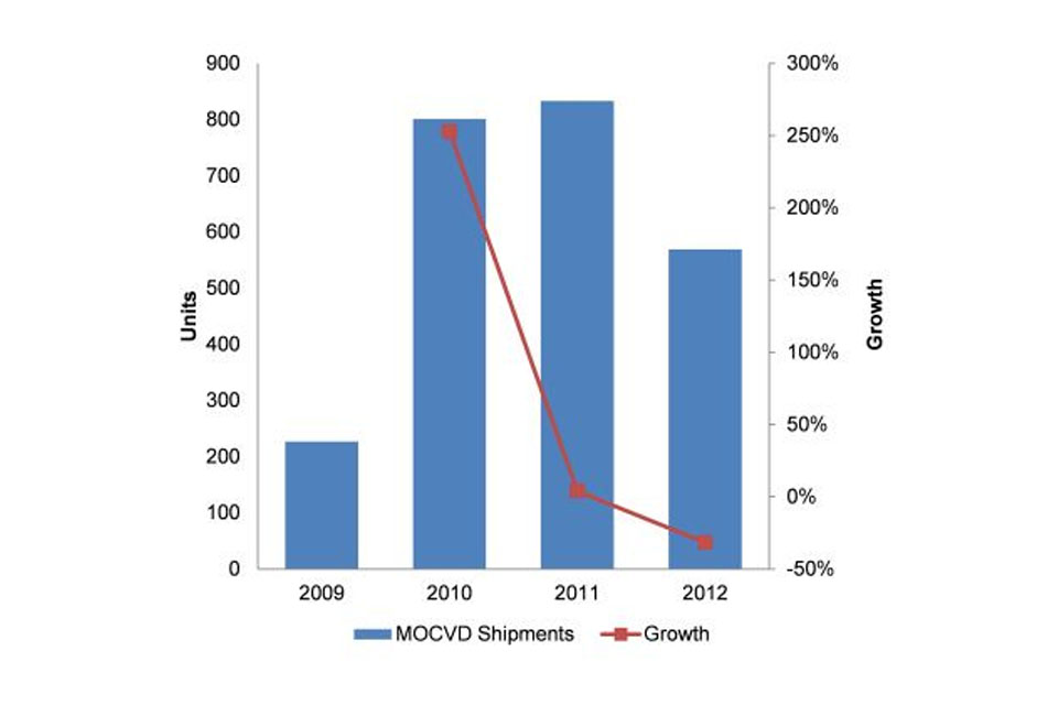 2009 – 2012 GaN MOCVD Results and Forecast (Source: Q3’11 IMS Research Quarterly GaN LED Supply/Demand Report)https://www.led-professional.com/media/business_reports_ims-research-downgrades-2011-and-upgrades-2012-quarterly-gan-led-mocvd-forecast_ims-research-2009-a-2012-gan-mocvd-results-and/viewhttps://www.led-professional.com/media/business_reports_ims-research-downgrades-2011-and-upgrades-2012-quarterly-gan-led-mocvd-forecast_ims-research-2009-a-2012-gan-mocvd-results-and/@@images/image-1200-2c43f9357edb233338640050ab6666bd.jpeg