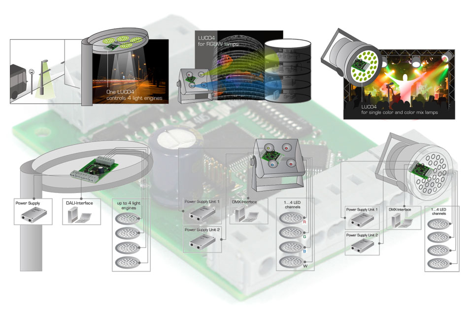 Dilitronics' LUC04 4-channel driver allows easy implementation of DALI or DMX for various demanding lighting applications
