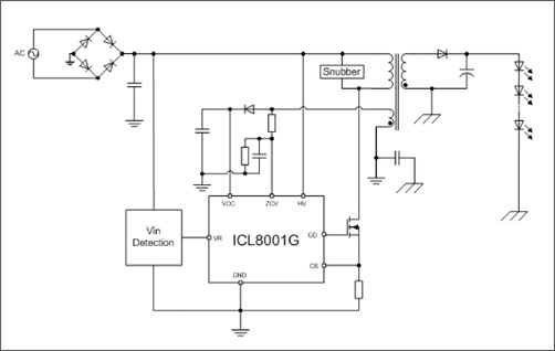 A typical application circuit using the Infineon ICL8001G.https://www.led-professional.com/media/products_led-driver-ics-modules_infineon-drives-innovation-in-led-lighting_inf_icl8001g_typapp-jpg/viewhttps://www.led-professional.com/media/products_led-driver-ics-modules_infineon-drives-innovation-in-led-lighting_inf_icl8001g_typapp-jpg/@@images/image-1200-ab5f074dd85ab5513702ae1339db573c.jpeg