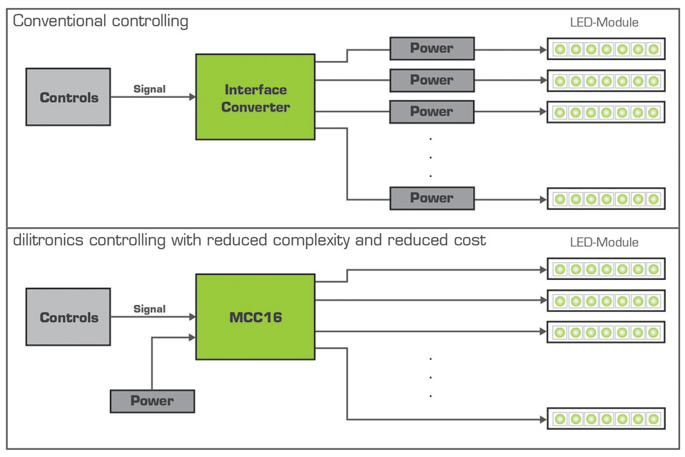 Comparison of a standard controlling system to the less complex and less costly dilitronics MCC16 systemhttps://www.led-professional.com/media/products_led-driver-ics-modules_innovative-led-driver-by-dilitronics-makes-light-usable-as-a-design-medium_dilitronics-mcc16-system-led-controlling-in/viewhttps://www.led-professional.com/media/products_led-driver-ics-modules_innovative-led-driver-by-dilitronics-makes-light-usable-as-a-design-medium_dilitronics-mcc16-system-led-controlling-in/@@images/image-1200-ab5f074dd85ab5513702ae1339db573c.jpeg