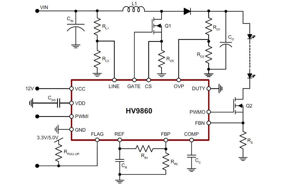 Typical application circuit using the Supertex HV9860 driver IC which provides wiring fault protectionhttps://www.led-professional.com/media/products_led-driver-ics-modules_supertex-hv9860-reduces-system-cost-complexity-through-wiring-fault-protection-feature_supertex-hv9860-driver-ic-typical-application/viewhttps://www.led-professional.com/media/products_led-driver-ics-modules_supertex-hv9860-reduces-system-cost-complexity-through-wiring-fault-protection-feature_supertex-hv9860-driver-ic-typical-application/@@images/image-1200-6a7ca34945dfb7090ea1fc7c90c007b4.jpeg