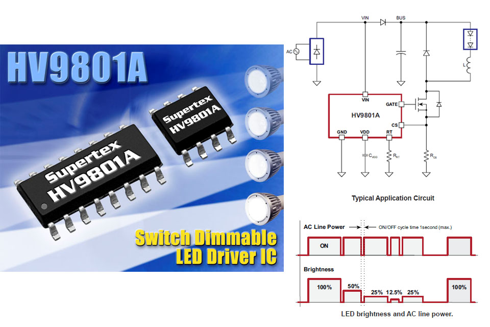 With the HV9801, Supertex offers a switch dimming solution, which is an attractive alternative to TRIAC dimming