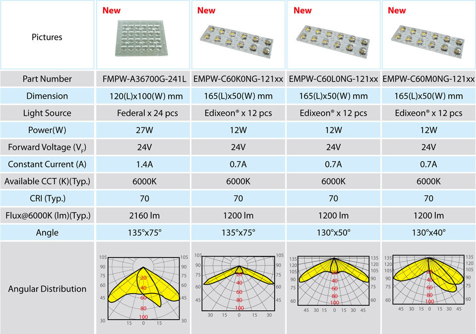 Specifications of Edison Opto's new streetlighting modules.