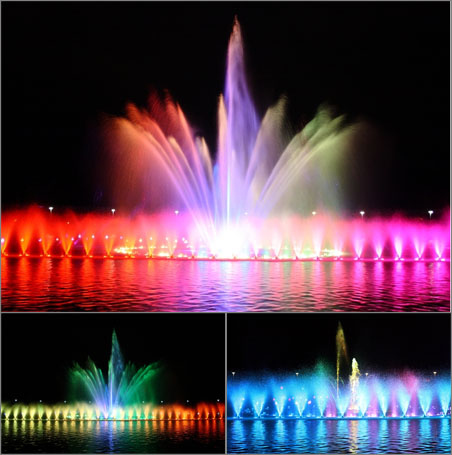 The spectacular RGB fountain illumination at the Wroclaw Continental Hall