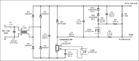 Schematic of a 70 V, 9.1 W Constant Current Buck Converter for Driving LEDhttps://www.led-professional.com/media/technology_electronics_power-integrations-design-ideas-target-wasteful-incandescent-bulbs-and-enable-high-efficacy-led-street-lights_di_172-gif/viewhttps://www.led-professional.com/media/technology_electronics_power-integrations-design-ideas-target-wasteful-incandescent-bulbs-and-enable-high-efficacy-led-street-lights_di_172-gif/@@images/image-1200-b3ebbbe207d275779194267095174ec5.png