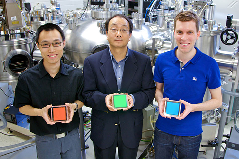 The research team that developed the “Cl-OLED” (left to right): Zhibin Wang (PhD Candidate), Professor Zheng-Hong Lu, and Michael Helander (PhD Candidate + Vanier Canada Graduate Scholar) hold their Cl-ITO enabled OLED deviceshttps://www.led-professional.com/media/technology_light-generation_advanced-materials-researchers-brighten-future-of-oled-technology_the-research-team-that-developed-the-acl-oleda-jpg/viewhttps://www.led-professional.com/media/technology_light-generation_advanced-materials-researchers-brighten-future-of-oled-technology_the-research-team-that-developed-the-acl-oleda-jpg/@@images/image-1200-45056ac5978438e9b5841a3ca79c3a72.jpeg