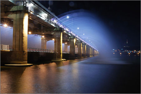 LEDs lighting up Banpo Bridge in Seoul, South Korea.