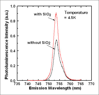 Comparison of photoluminescence spectra of samples with and without the SiO2 layer.
