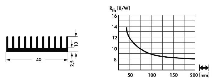 Figure 3 - The diagram shows the thermal resistance of a heatsink as subject of the size.