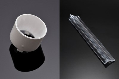 The impact-resistant polycarbonate used to manufacture the reflector is of a special, highly-reflective grade that does not require metallization to achieve peak performance of up to 92% efficiency. The housing contains integrally molded location pins for precise location over the LED and the location pins can also be fastened to the PCB with an approved secondary adhesive. The material is RoHS compliant, rated for use up to 115⁰ C and meets UL 94 V-2 flammability rating.