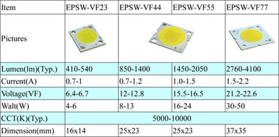 EdiPower® II offers lumen efficiency up to 100 lm/W satisfying most lighting needs. EdiPower® II series provide several choices of luminous; 410-540lm series ideal for replace conventional light sources, such as halogen lamps and mercury. 850-1,400lm can be used in MR16, embedded lights and spot lights. 1,450-4,100lm is suitable for LED projector, and also applicable to large space lighting, factory lighting and architectural lighting, etc.