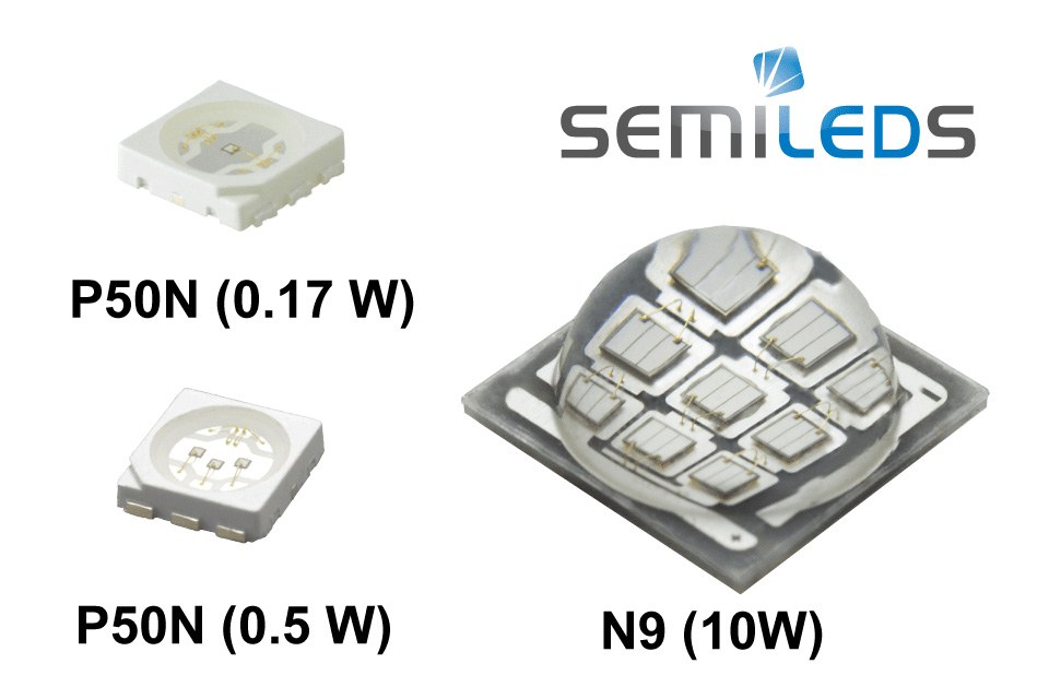 SemiLEDs Corporation announced the release of two new product families, the 10-watt high-power N9 series, and the 0.17 to 0.50-watt mid-power P50N series. Both product families take advantage of SemiLEDs unique patented vertical LED structure that delivers superior performance in directional industrial applications, such as printing, coating and curing, and specialty applications including signage and medical or cosmetic uses.