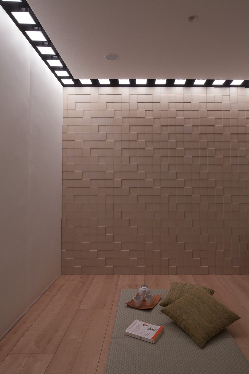 Mitsubishi Chemical Corporation was recently approached by LIXIL’s upmarket eco-homebuilding franchise Eyeful Home Company, to install lighting in a health room at one of its flagship show homes in Toyko. Lighting is an important aspect in the health room which is centred on relaxation. Extensive research already underlines the important relationship between light and well-being. The objective was to use Verbatim VELVE™ OLED modules to create an entirely new design concept for the room and deliver lighting with warm hues which could help project a calm, peaceful atmosphere. The result is an eye-catching border pattern of panels on the ceiling which can provide alternating coloured light that’s easily controlled and adjusted by those spending time in the room.
