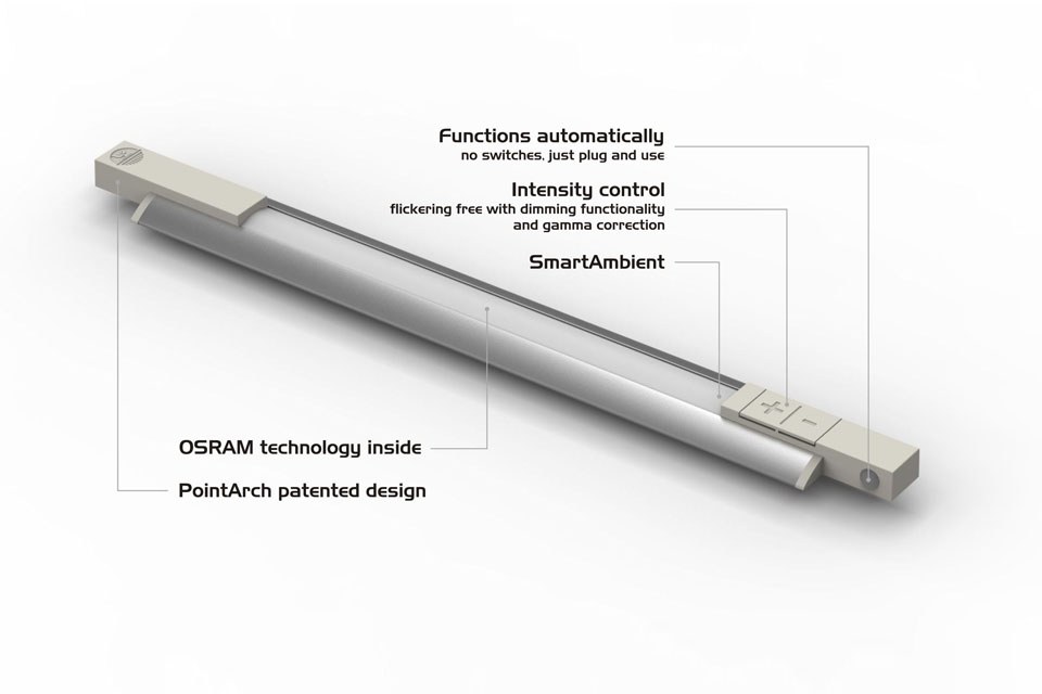 Similarly to long form version, Catherinaˢ has a simple setup using built-in micro-controller provided by Microchip with integrated high resolution control over light output levels, ambient light threshold, dimming functionality, and Gamma correction which improves visual comfort. Once the desired settings are adjusted the CatherinaS doesn’t need to be adjusted again. It can be installed in any location that is dry and has low voltage distribution network or a standard wall outlet. Suggested applications for Catherinaˢ are under cabinet lighting (kitchens, shelves, desks, etc.), smart indirect illumination for rooms, galleries, museums, cupboards, stair illumination, architectural lighting and many others.