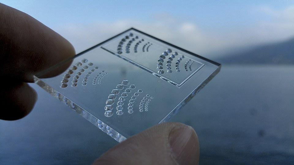 Like in digital printing, the platform keep going until the “optical resin” - basically a container with a liquid acrylic - is empty, and the “paper” - a translucent substrate material like PMMA, Polycarbonate and glass - needs to be replenished. Even though the material is deposited in discrete drops, the resulting surfaces are smooth straight from the printer and don’t require post-processing.