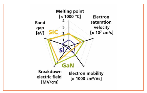 Figure 2: Comparison of several physical properties of Si, SiC and GaN [4]