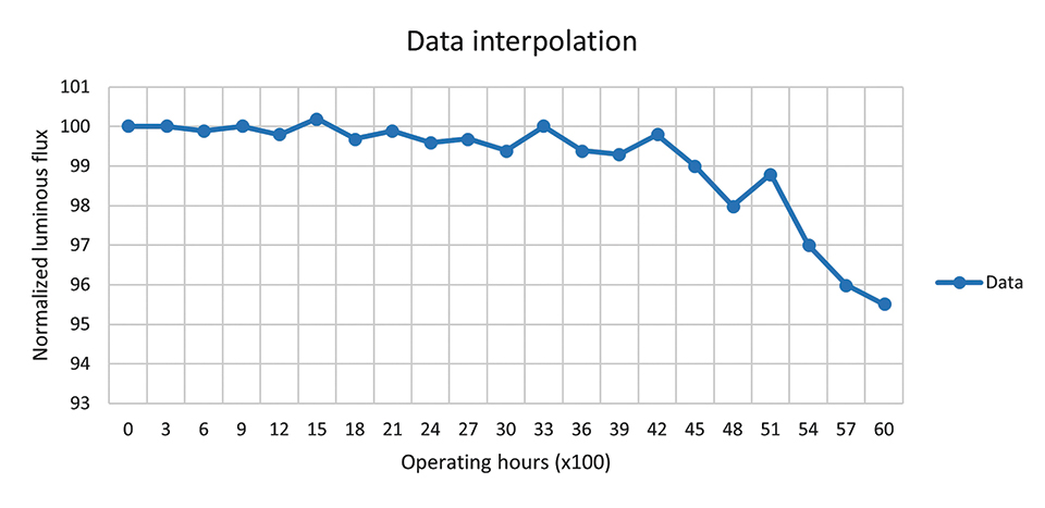 Hence, the CLO method uses the data based LM80 report provided by LED manufacturers, then, long term luminous flux maintenance for LEDs is basically estimated by a mathematical process as explained in TM 21, instead of the real one. According to the TM-21-11, values during a minimum of 6,000 operating hours are processed by approximation exponential regression and then statistically estimating the light degradation six times beyond this period.