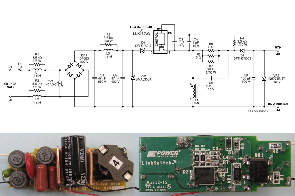 Comments Andrew Smith, product marketing manager at Power Integrations: "The lighting industry typically asks for 80% efficiency for drivers targeting 60 W A19 bulb replacements. To achieve viable LED-based replacements for 75 W and 100 W bulbs, much higher efficiency is needed in order to reduce the heat dissipated by the driver. The 88% efficiency of DER-323 satisfies this need and makes the thermal design of the bulb straightforward and inexpensive. DER-323 is also compact, reliable and easy to manufacture thanks to its low component count, single-stage architecture and use of a low-cost inductor rather than a transformer."