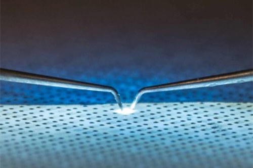 The prototype chip has a five to ten times larger surface on the same substrate than current LED chips, and thereby generates significantly more light in relation to the base area. In addition the luminous efficacy will be increased by approximately 10% in the future. "That would make several thousand additional chips from each wafer, according to the specific model," said Strassburg. To achieve the 3-D chip geometry, a particular masking layer is applied to the wafer above the first deposited semiconductor layers which can be imagined as an ultra-thin glass panel covering the chip itself. Holes are then applied to this with diameters of just a few hundred nanometers, through which the characteristic columns of the Nano LED develop. These columns are then coated with a transparent contact material to ensure that the driving current can spread across the entire surface.